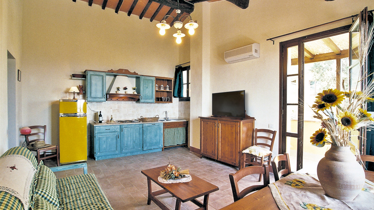 Se hai deciso di trascorre una vacanza di relax con la tua famiglia oppure con gli amici, il “Trilo plus” può essere la tua dolce casa in Toscana. Questo appartamento di 80 m2 è stato costruito ex novo in tipico stile toscano con travi in legno a vista, e arredamento con mobilia realizzata in Toscana.