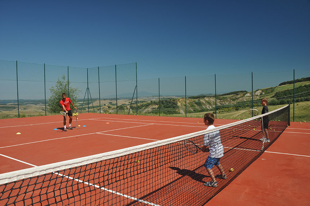 Abbiamo anche la possibilità di fare su vostra richiesta lezioni di tennis per bambini, e principianti o giocatori di buon livello che vogliono allenarsi. Le lezioni possono essere singole o inserite in un corso settimanale. E’ l’ occasione per imparare a giocare durante la Vs. vacanza in un agriturismo con campo da tennis in Toscana.